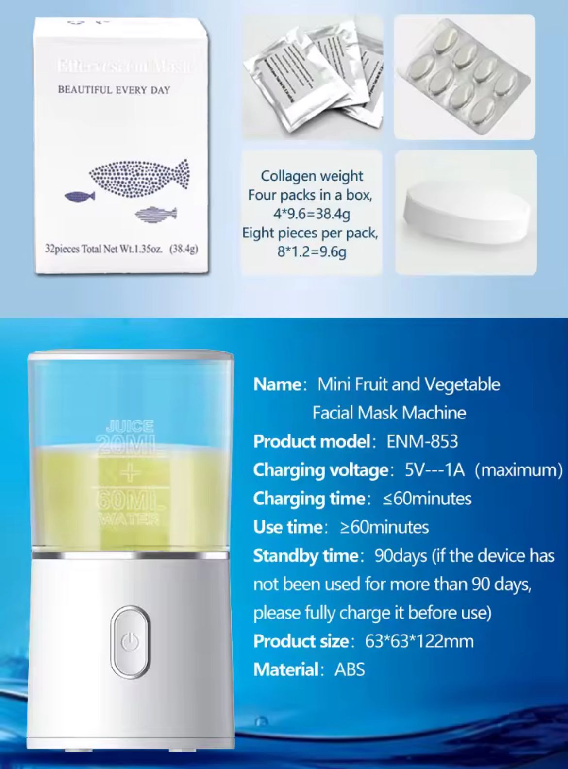 1.Máquina de mascarilla facial natural de frutas y verduras, sin conservantes, sin plomo, sin mercurio u otras sustancias irritantes.Súper seguro y saludable,
